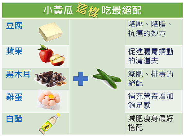 小黃瓜熱量低又富含維生素C及E,所以非常適合搭配3餐進食,
